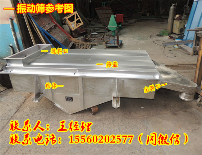 【產品簡介】DZSF直線振動篩是由機架、機體、篩框、篩網、清網球、電機等配件組成,一般使用在化工行業的比較多,比如說:河沙、石灰、石子等,糧食行業也可以使用,比如說:綠豆、黃豆、麥糠等都可以篩分。這臺機器的主要功能是大小分級、篩分, DZSF系列直線振動篩具有體積小、結構簡單合理、篩分精度高、全封閉無污染、低噪音、低能耗、維修方便、保養簡單、篩網壽命長等優點。可單層或多層使用,最多可達到五層,篩框一般為木制結構,若篩孔較大,產量較高時篩框可制成鋼質結構,若篩分腐蝕性物料,與物料接觸部分采用不銹鋼制作。電機安裝方式可分