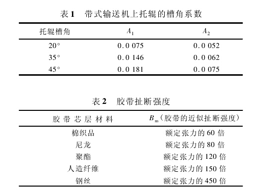 由式1可計算得出凹弧段的最小半徑。但是當膠帶的張力過低時,膠帶的邊緣處有可能產生皺曲,將無法保證皮帶輸送機的安全運行,因此需對該半徑值進行必要的校核。鑒于目前國內尚無成熟的計算公式可循,建議采用美國輸送設備制造商協會聯合會推薦的公式對最小半徑進行驗算,以保證膠帶具有足夠張力,避免在凹弧段處的膠帶邊緣出現零張力'對織物芯膠帶,用下式進行驗算: